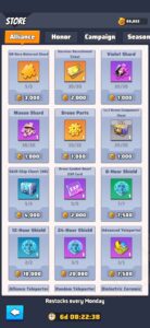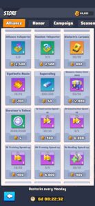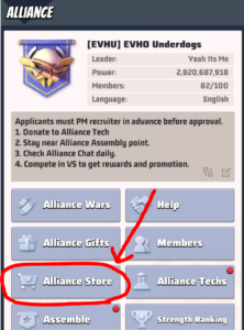 The alliance store is a storefront within the game where you can purchase a lot of needed items! This store is the only one in the game that uses a currency that is 100% only able to be earned by being active in the game and participating in the alliance. You can not spend any real money to get credits to use in the alliance store. The currency used in the alliance store is called “Alliance Contribution Points”