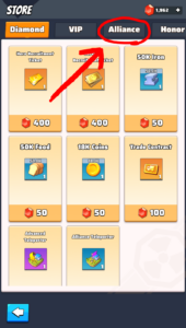 When you click on the store building, the game will open onto the diamond store, but if you look at the tabs on the top you can navigate to the Alliance store.